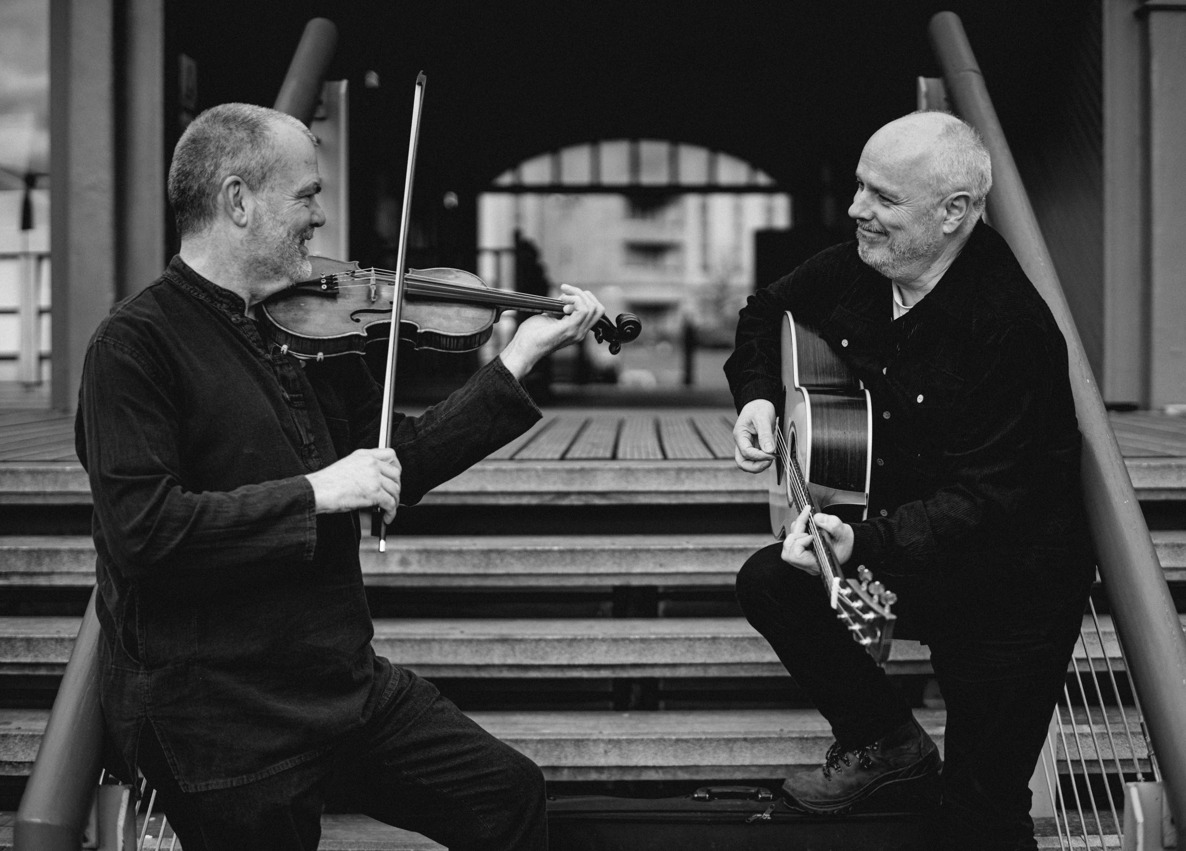 Together they compose, produce and perform music of tremendous variety. As a duo they perform traditional and contemporary tunes stripped back to the bare essentials of fiddle, guitar and Scottish smallpipes. With their long-term collaboration, they have achieved a deep and instinctive understanding of each other’s musical interpretations.