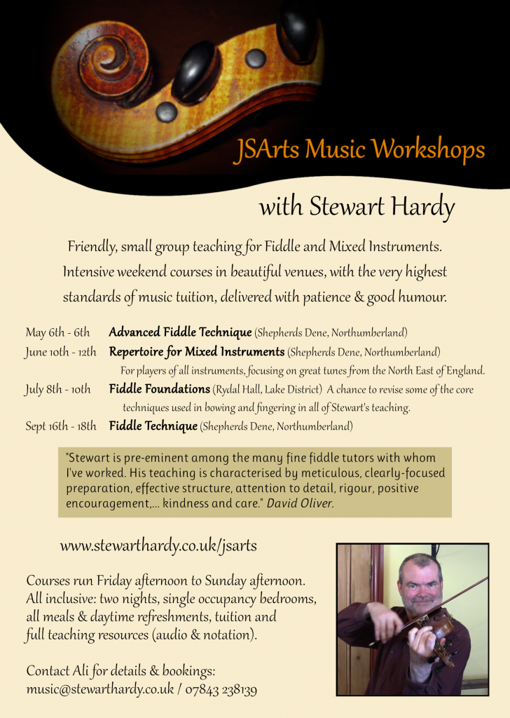 Next we have an Advanced Fiddle Technique course, which is an intensive course designed to further improve the technique of already proficient players, whilst expanding their repertoire, and enjoying the chance to share tunes in two evening sessions. Then in June we have a Repertoire for Mixed Instruments course, which will focus on the great tunes of the North East of England, both old and new. Aimed at players of intermediate level and above, this course at Shepherds Dene will be a chance to expand your repertoire, and look in depth at the different styles found in the great wealth of material from this region.