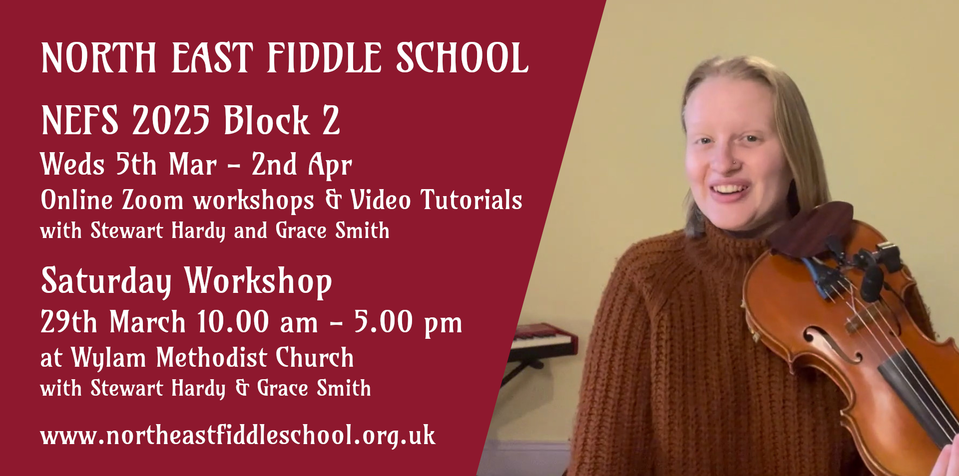 NEFS 2025 Block 2 will begin on Wednesday 5th March, with more tips, techniques, exercises and tunes from both Grace Smith and myself. Join us on Zoom to play along with our lovely group of participants, and if you can’t make it live you can catch up with the call recordings later.